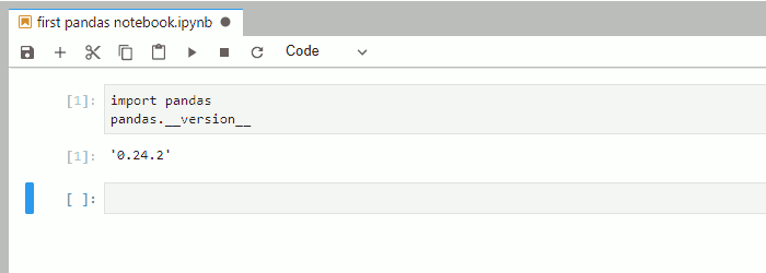 In the first cell of the notebook, you can import pandas and check the version with: